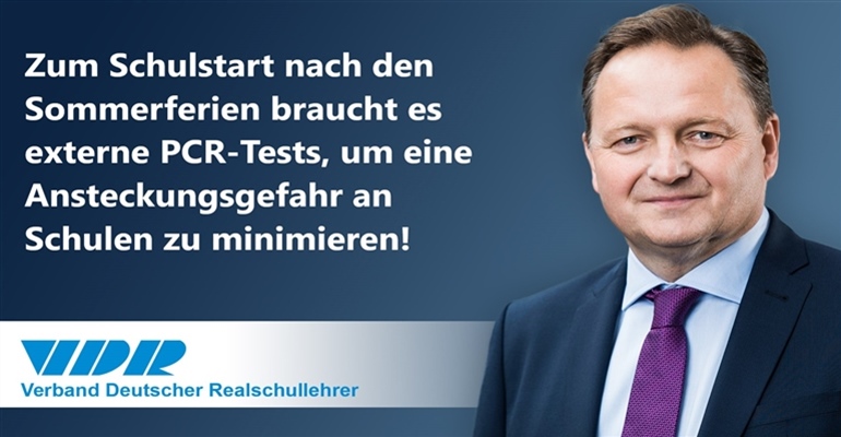 „In den ersten Bundesländern enden in den kommenden Tagen bereits die Sommerferien. Eine sorglose Rückkehr an die Schulen darf es nicht geben und würde die aktuell steigenden Infektionszahlen nur weiter in die Höhe treiben“, betont Jürgen Böhm, Bundesvorsitzender des Deutschen Realschullehrerverbandes (VDR).